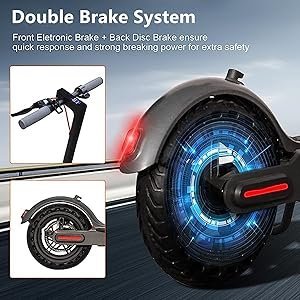 ![]() Langstrecken-Pendler-RollerDer Elektroroller Max Reichweite von 20-25 km unter optimalen Bedingungen, Geschwindigkeit bis zu 25 km/h, vermeiden Sie die Belästigung durch den dichten Verkehr, keine Angst vor dem Kilometerstand, einmal eine einzige Ladung für ein paar Tage pendeln.ganz, geeignet Elektroroller für Erwachsene. ![]() Leistungsstarker MotorDer Elektroscooter 350W Brushless Motor 36V 7.5Ah Batterie mit hoher Energiedichte, klettert 15° bergauf und belastet max 120 kg, ideal für leichte Reisen, Pendeln, Verabredungen, auf dem Weg zur Schule oder Bibliothek. ![]() Duales BremssystemDer e roller verfügt über eine Scheibenbremse und ein regeneratives Antiblockiersystem EBS. Es kann Ihre Sicherheit gewährleisten. Der e scooter hat eine eingebaute Klingel. Hat sowohl Kopf- als auch Rücklichter, von denen letzteres schnell blinkt, wenn Sie auf die Bremse treten. Sicheres Fahren bei Nacht mit dem LED-Frontlicht und dem roten Rücklicht.